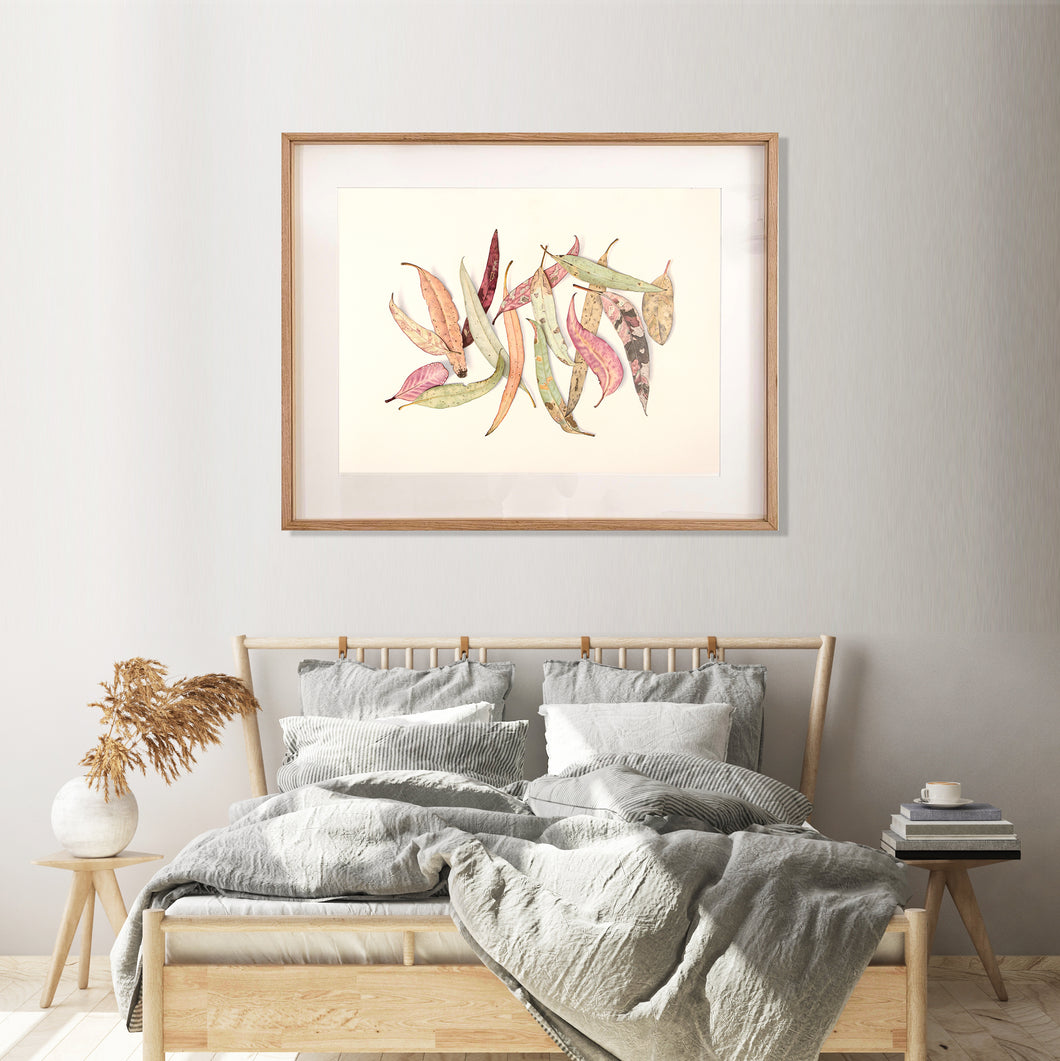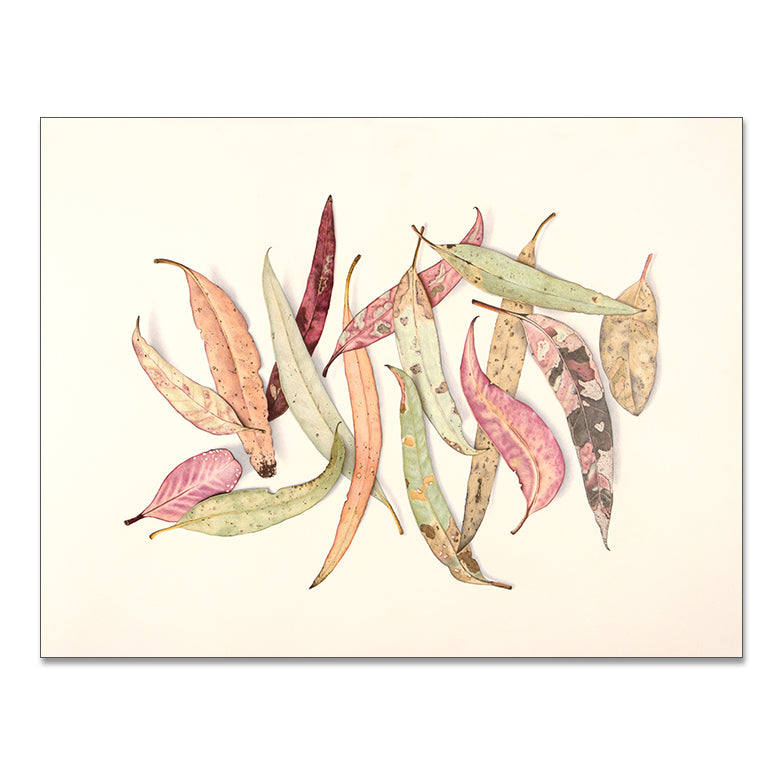 This collection of illustrations showcases a variety of fallen gum leaves foraged with my daughters while out bush walking over late summer. This time spent with my girls often provides new inspiration and motivation to take back into the studio. Their innocent eyes find the most beautiful details in the simplest things. I find this feeds my child like soul where I constantly look for the beauty in everyone and everything no matter the circumstances. I knew these timeless adventures with my girls needed to be captured in a visual art form.